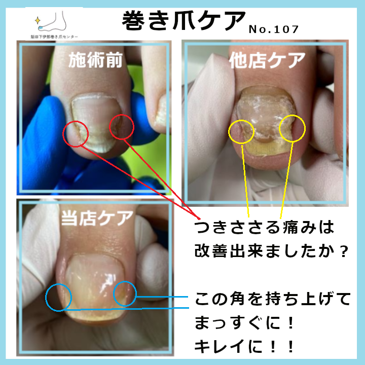 お客様から痛みが取れて『何年かぶりに普通の爪になった』と、お喜びのお言葉をいただきました。