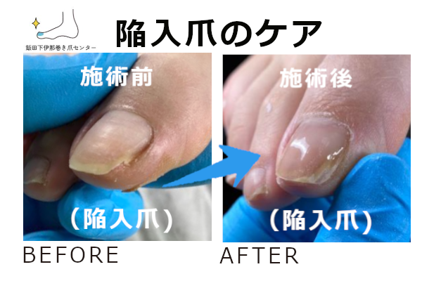 70代のお客様の爪甲鉤彎症のケアをさせていただきました。